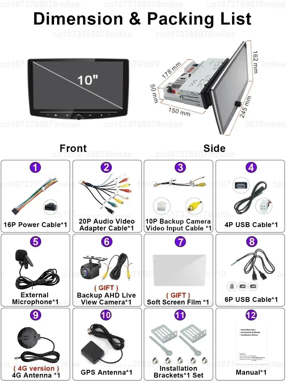 (10.1) The condition for the radio to be turned on is that ACC and 12V are connected to the positive pole of the car 12V power supply, and GND is connected to the negative pole of the power supply. The chances of the power cord not matching your car are very slim. You can connect these 3 power cables directly Connect the car power cable without radio,