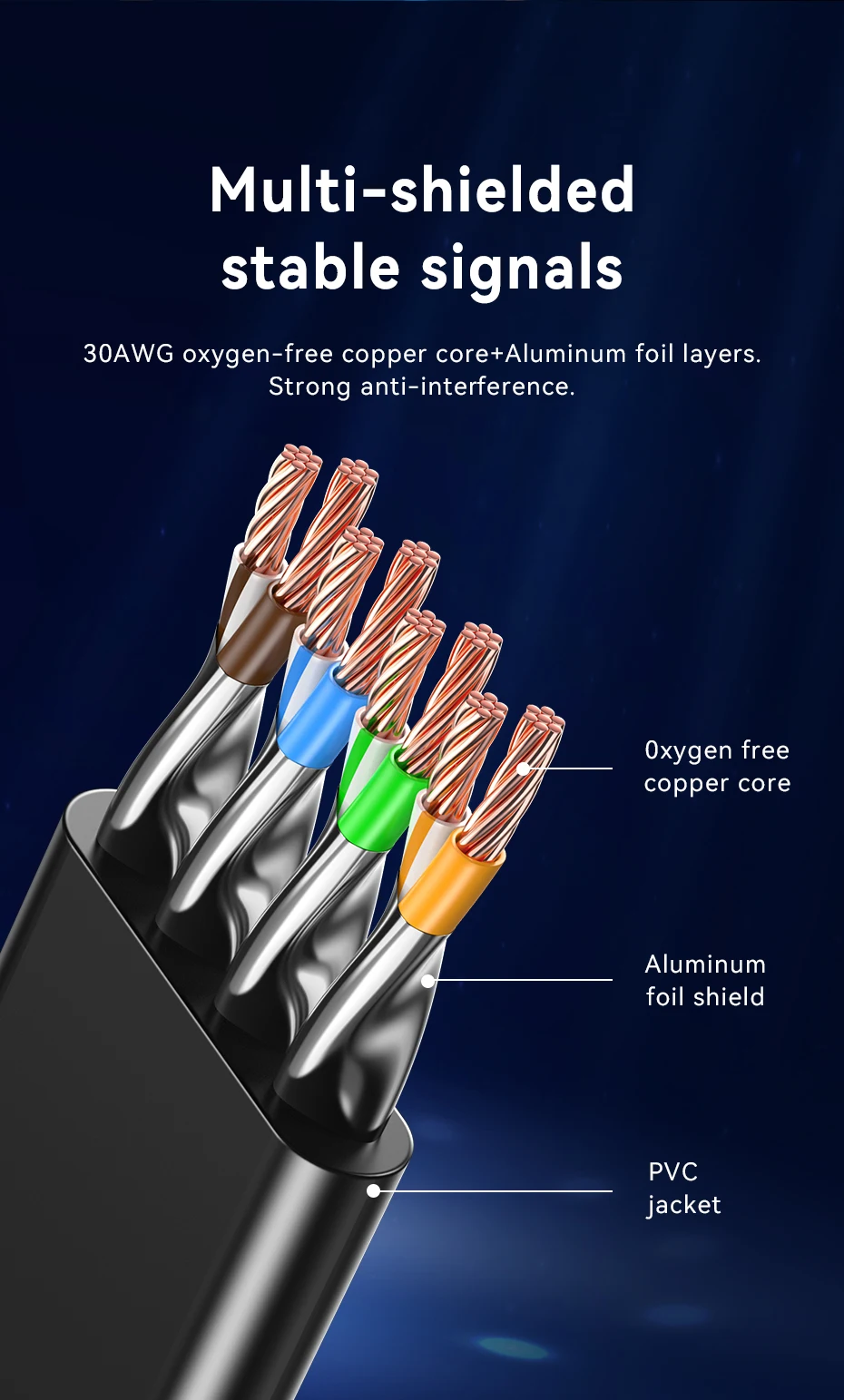 30AWG oxygen-free copper core+Aluminum foil layers