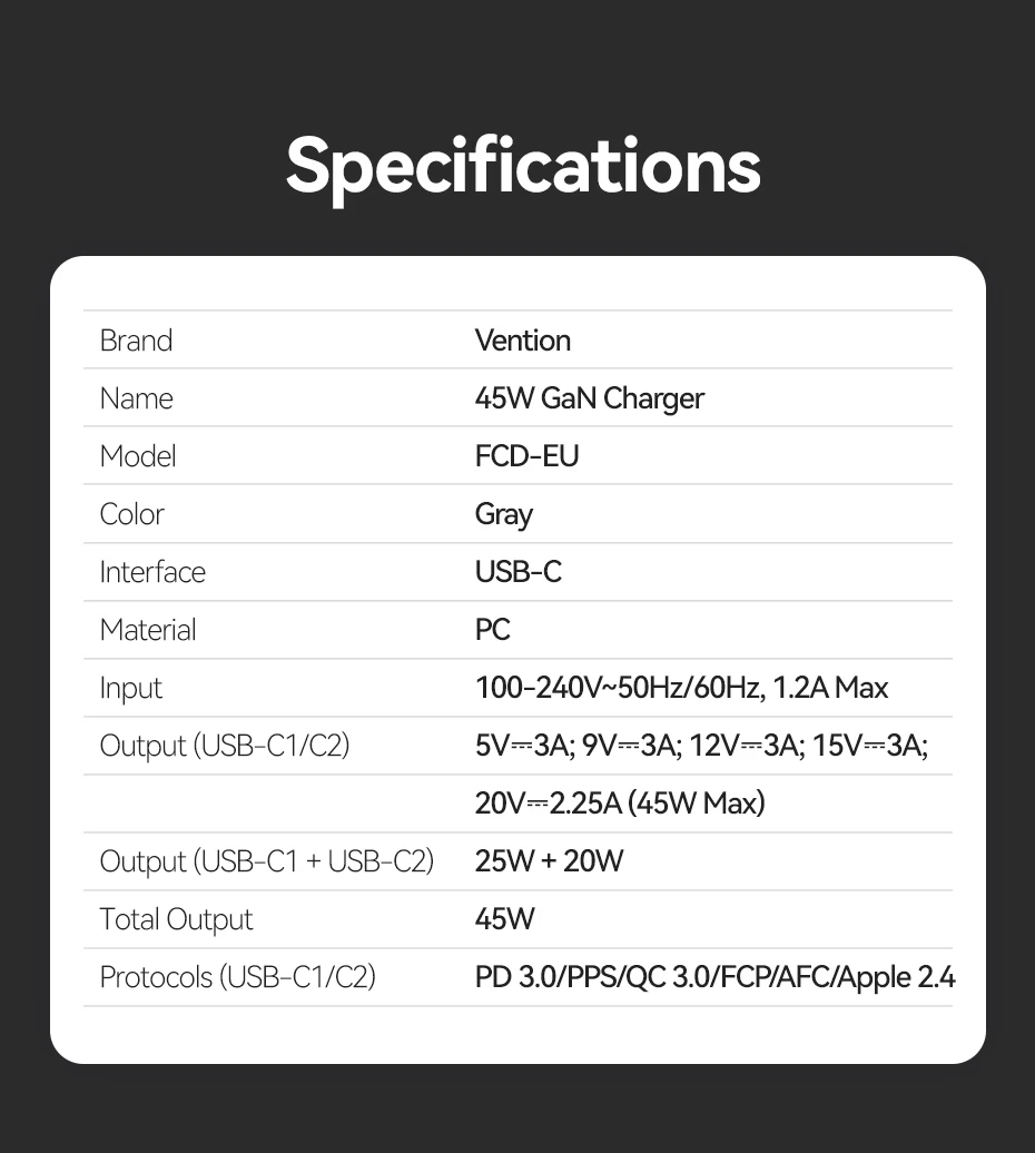 - Applied Fast Charge Protocols: Samsung Adaptive Fast Charge,Huawei FCP,USB PD,Qualcomm Quick Charge,Huawei Quick Charge