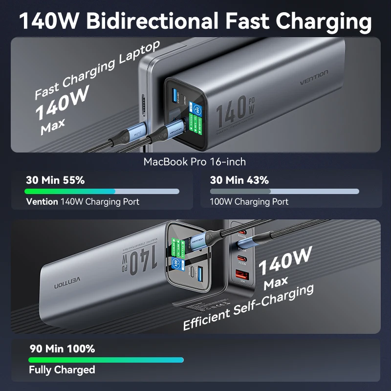Vention Power Bank 140W 27000mAh Portable PD External Battery PowerBank 100W for Macbook Pro iPad iPhone Laptop Notebook Xiaomi