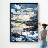 Be the first to review “Vertical Canvas Wall Decor Hand Painted Oil Painting Large Modern Abstract Blue Wall Art Colorful Textured Paintings For Home”