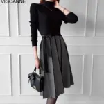 Be the first to review “VigoAnne 2025 Woman Black Patchwork Knit Dress Spring Autumn Long Sleeve Korean Dresses Lady Evening Party Tight Long Dress”