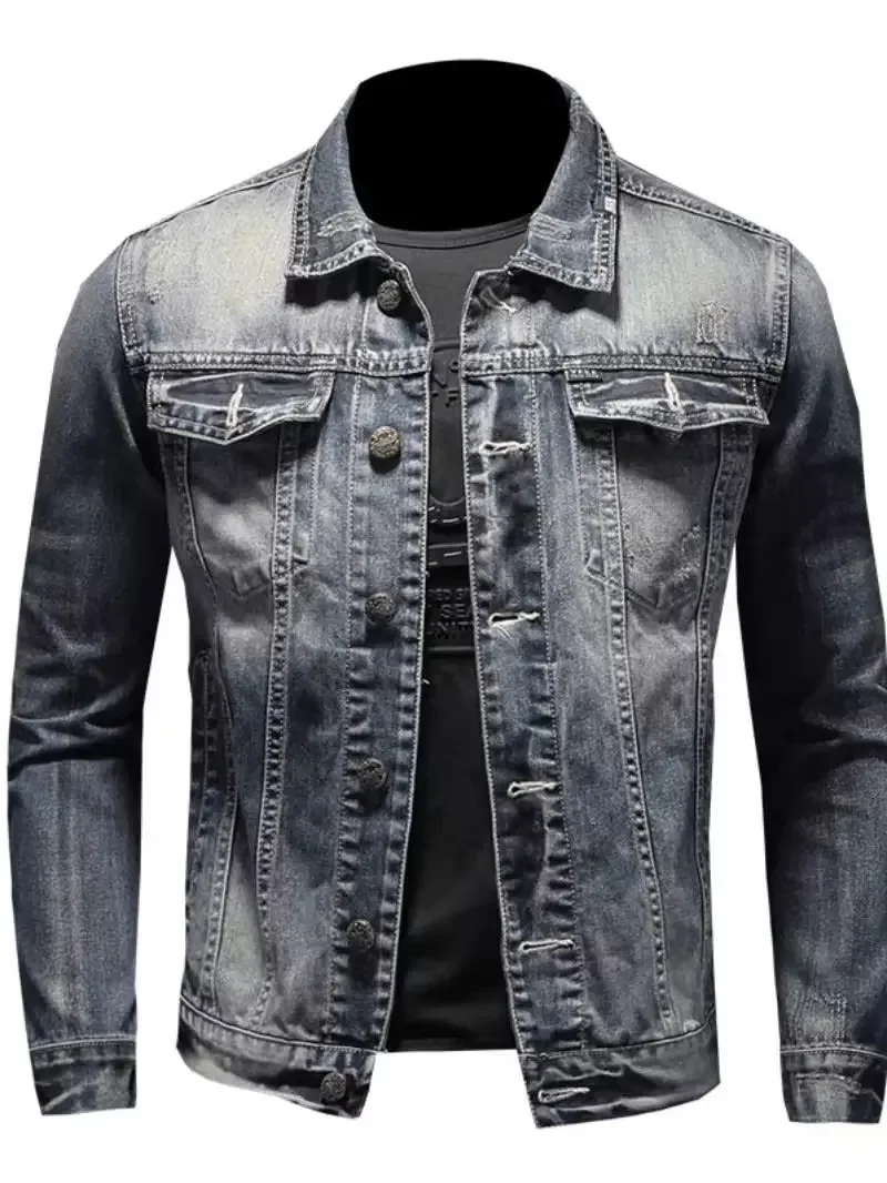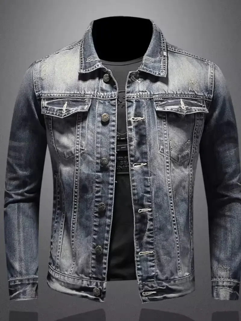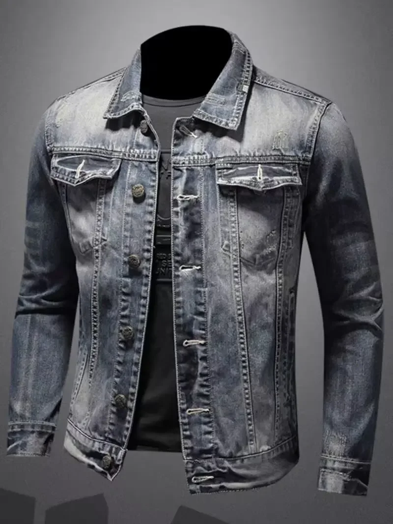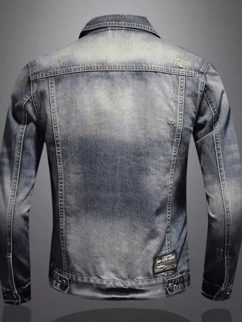 Vintage Plus Size Men’s Denim Jacket Slims Casual Fashionable Unique Motorcycle Versatile Spring Autumn For Men