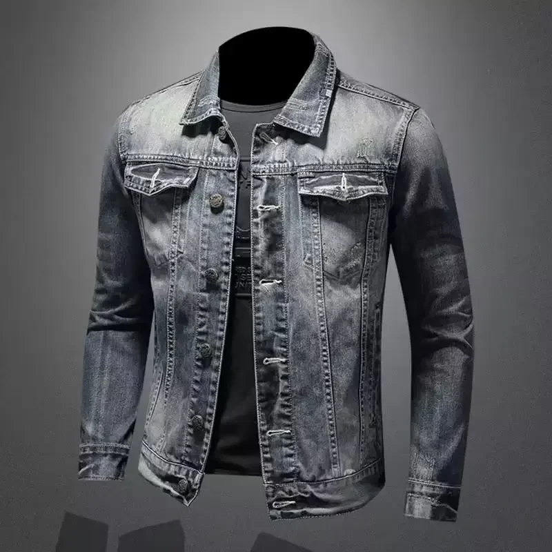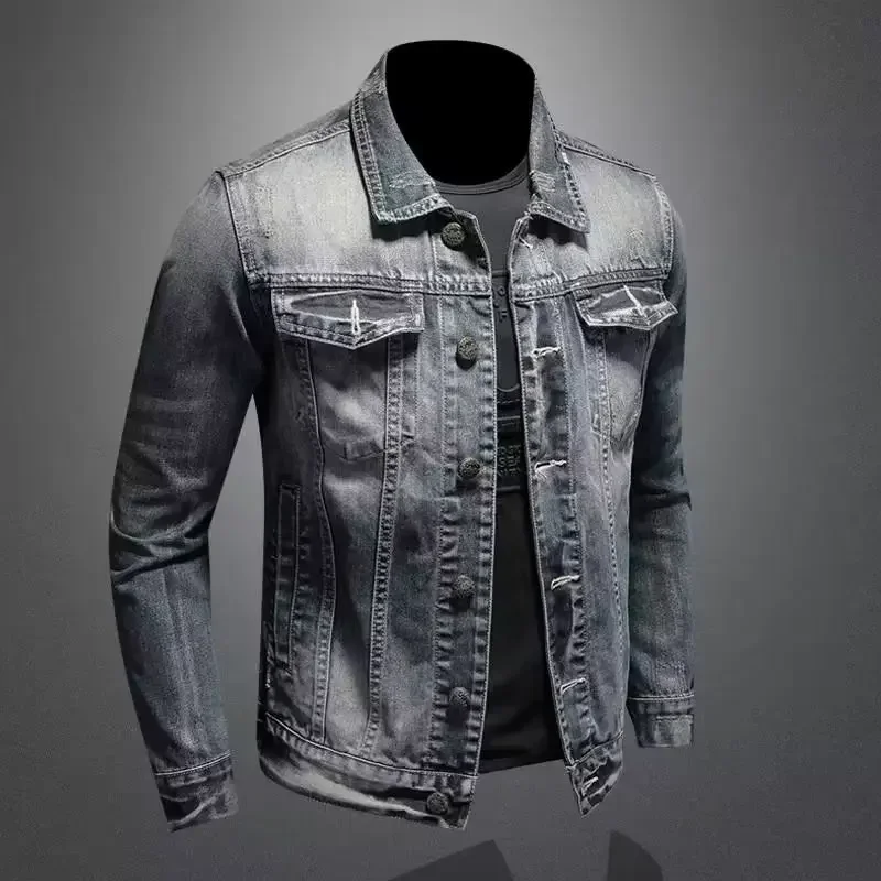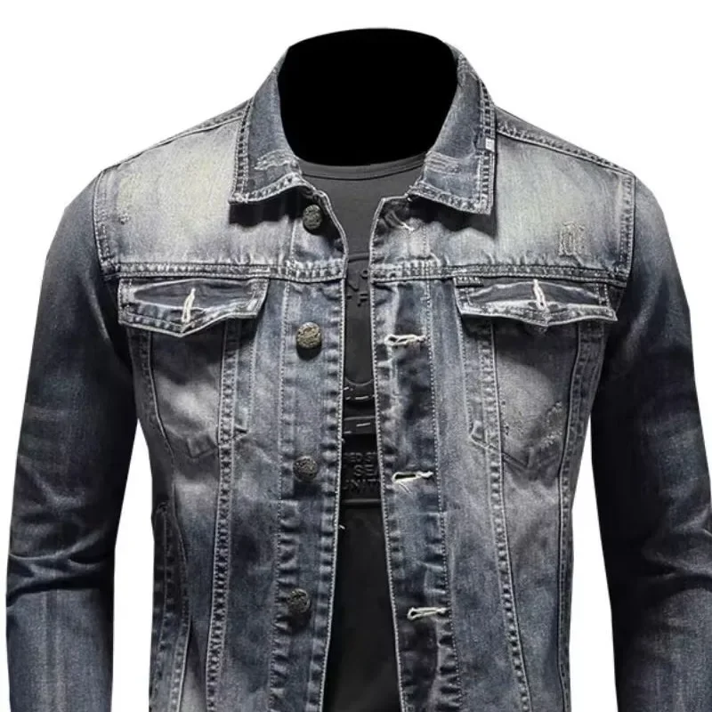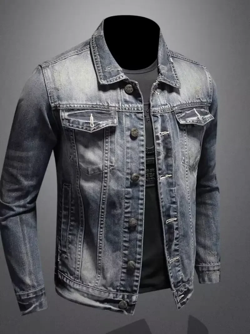 Vintage Plus Size Men’s Denim Jacket Slims Casual Fashionable Unique Motorcycle Versatile Spring Autumn For Men