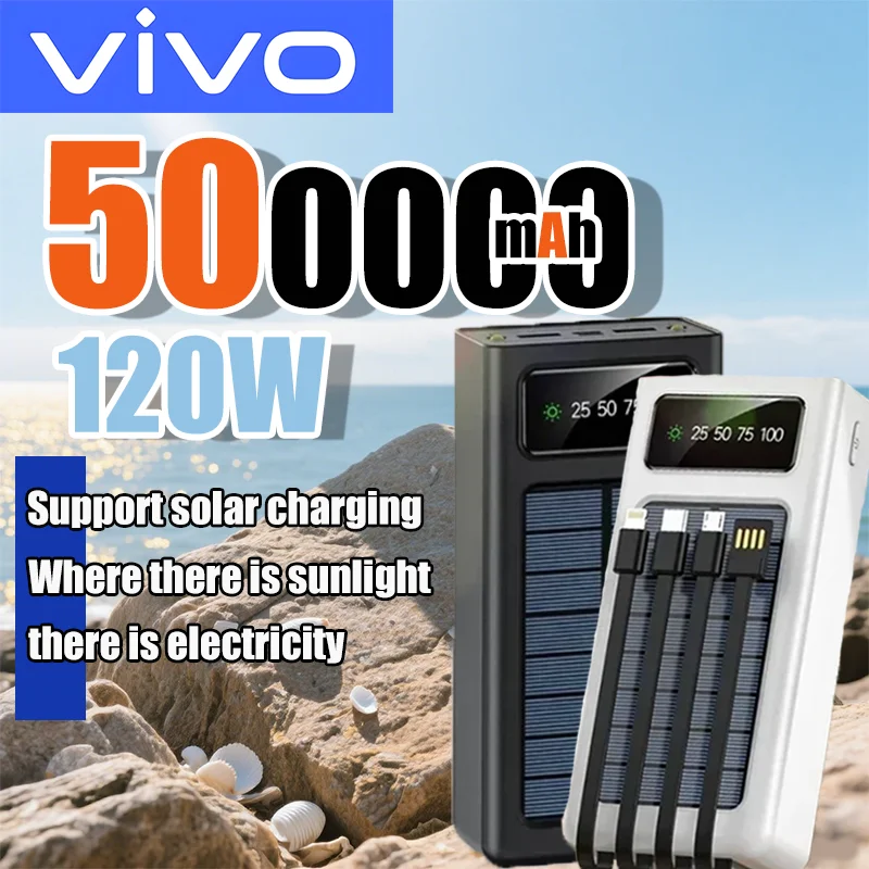 VIVO Solar Power Bank 500000mAh Large Capacity Mobile Power Fast Charging Battery With Dual USB 4 Cables For iPhone Samsung 2025