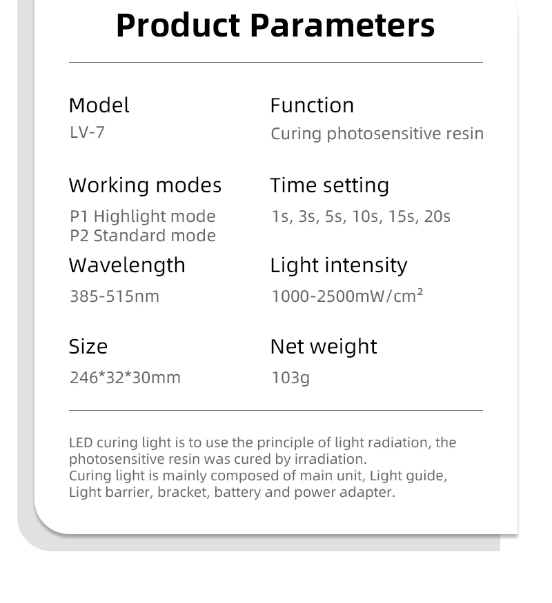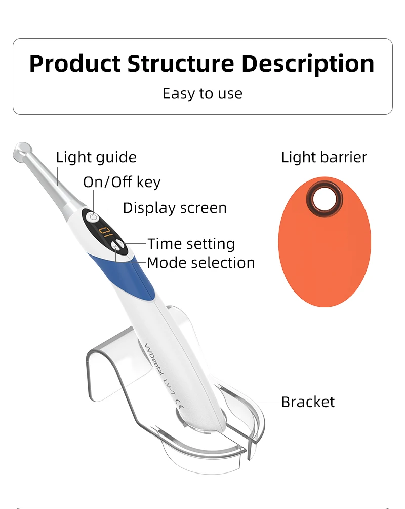 VV Dental Tools LV-7 Wireless LED Curing Light Lamp 2500 mw/cm2 Dental 1sec LED Curing Light Dental Lamp Cure Resin