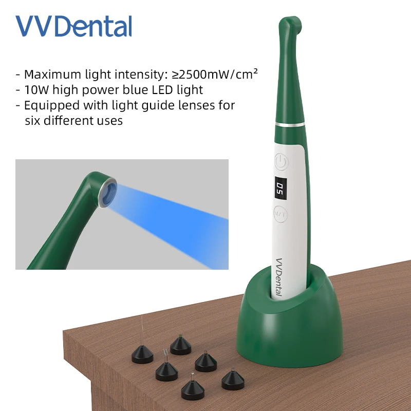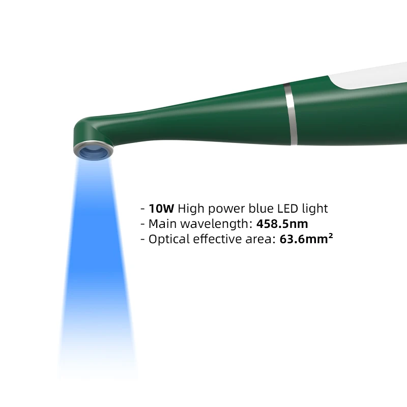 Segmented design: detachable magnetic lamp head, which can be rotated 360° to cure upper and lower teeth.Equipped with six magnetic light tubes: the red and green light heads can observe the spots on teeth in more detail, and the extended tube light head is suitable for curing between teeth or narrow tooth gaps, and curing of tooth roots.