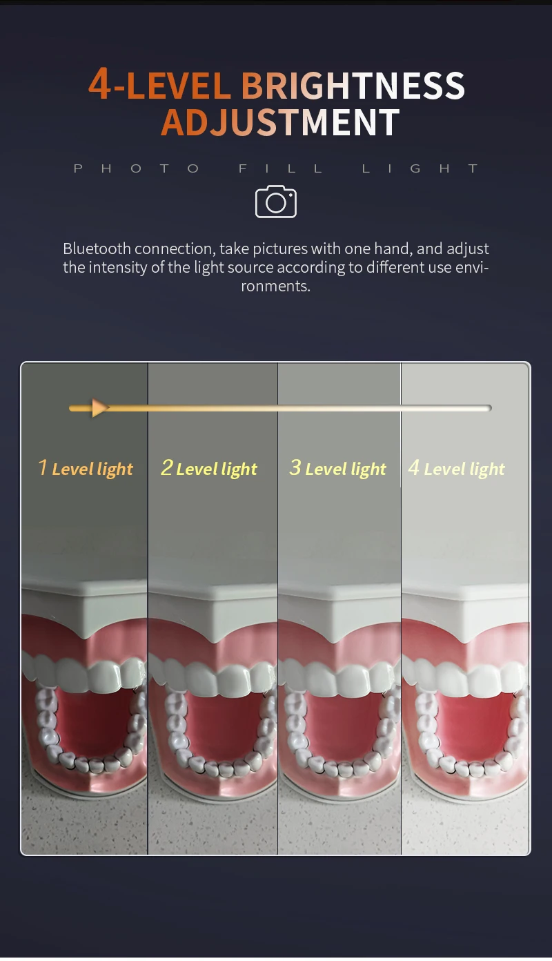 Note: 1. Bluetooth indicator blinking indicates that bluetooth is not connected, and the rear light is off after connected. The indicator blinks once every time you take a photo;