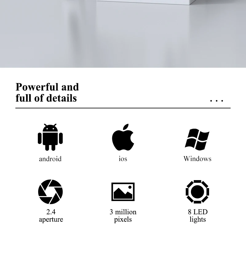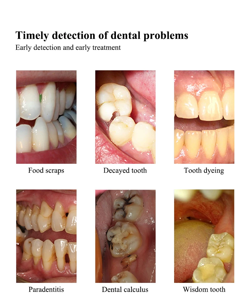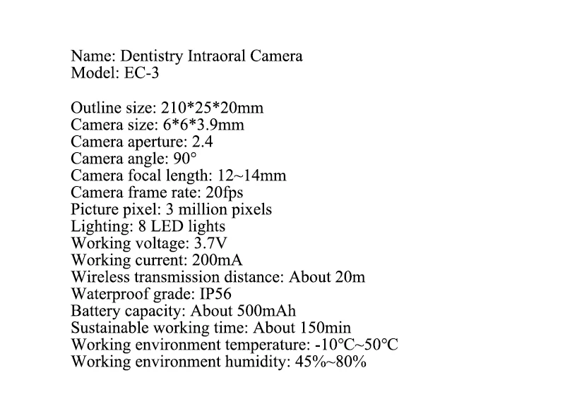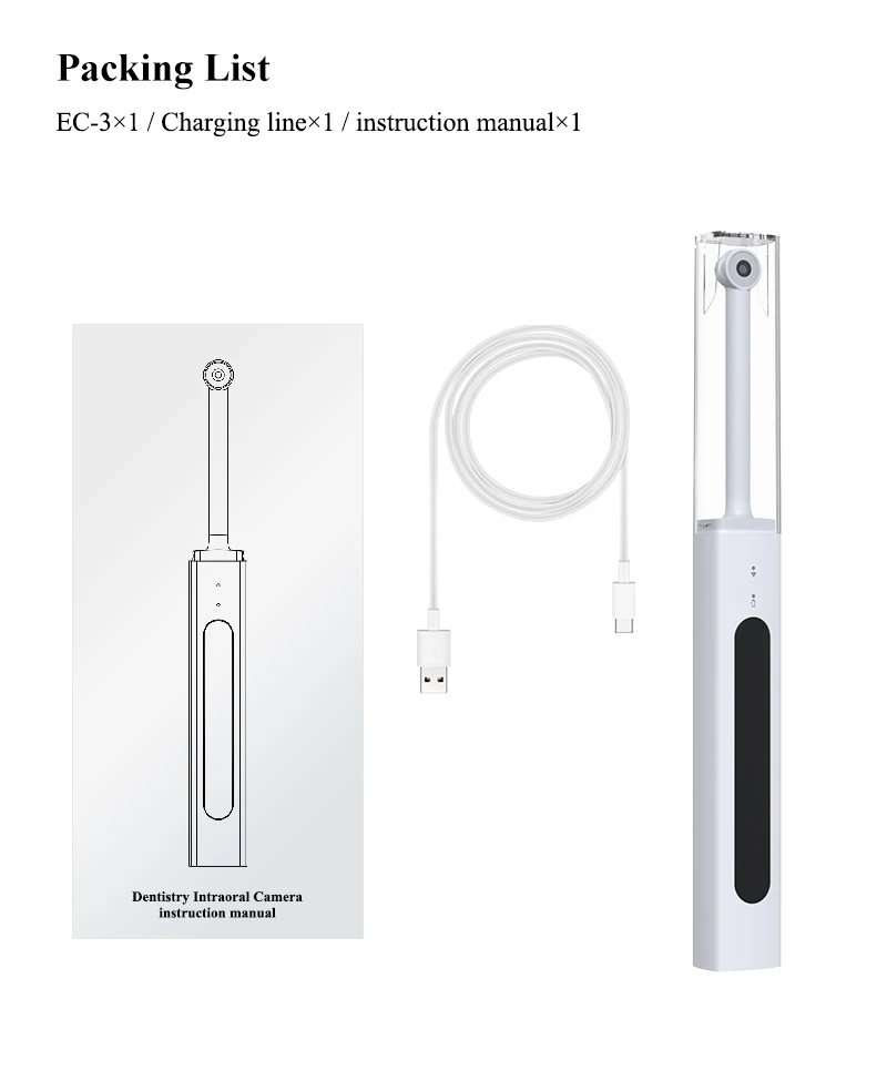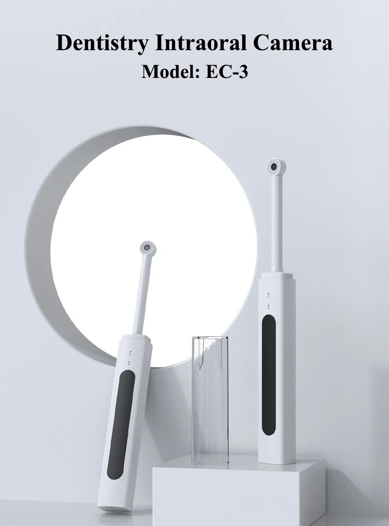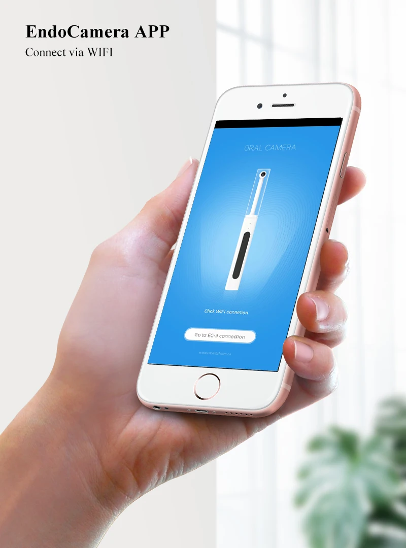 This series of products is a portable wireless visual dental camera with supplement LED light around the lens, can image oral through wireless signal. Real-time transmission to mobile phone, tablet PC, smart TV, smart mirror, computer and other smart device, and provide video, photograph and other functions to help you check oral.