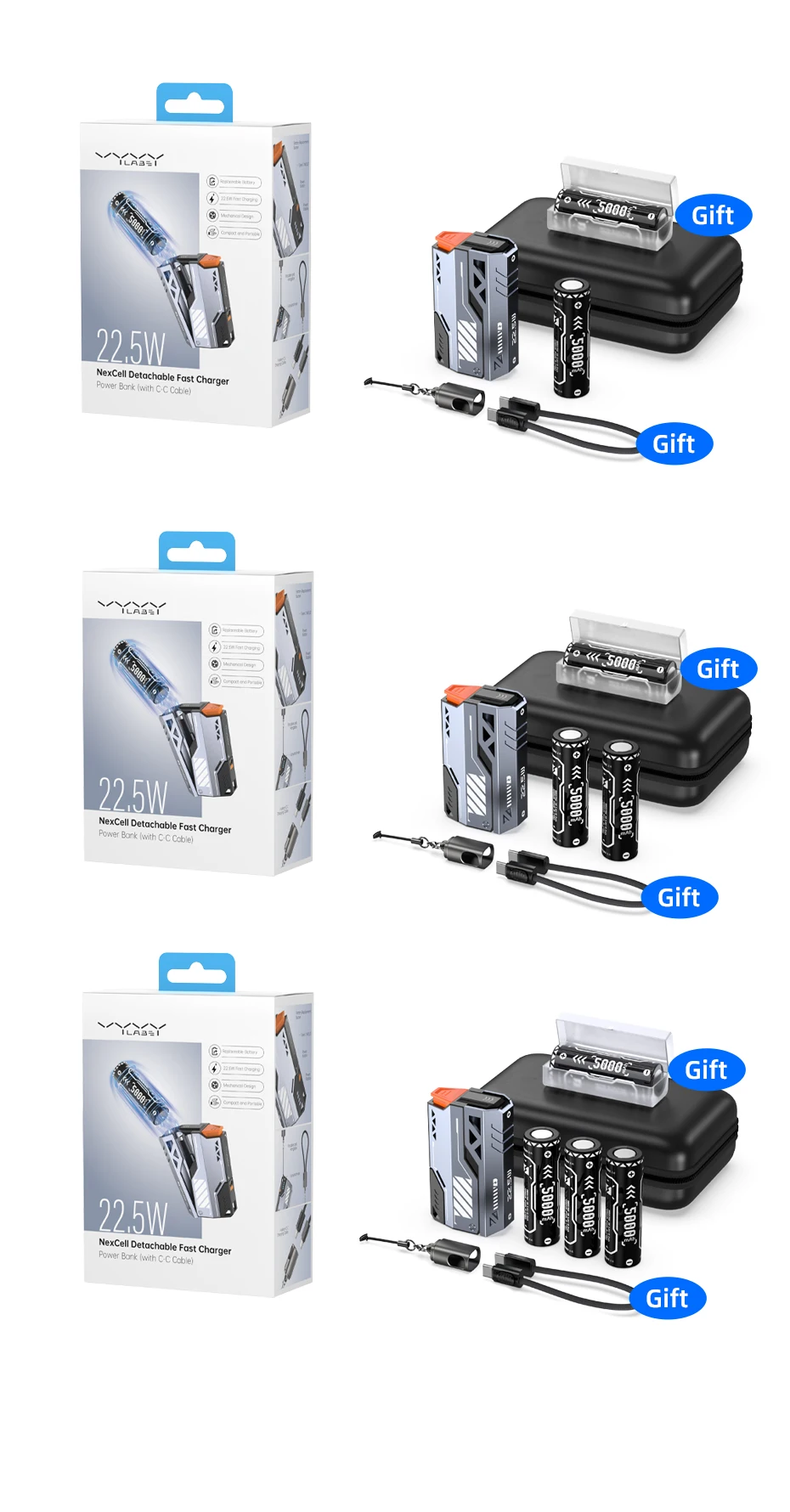 Vyvylabs NexCell Detachable Battery Fast Charger 22.5