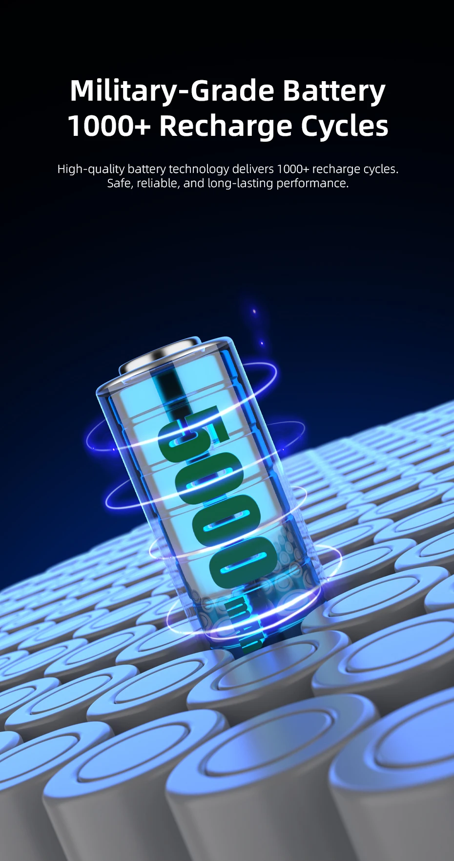 Military-Grade Battery 1000+ Recharge Cycles