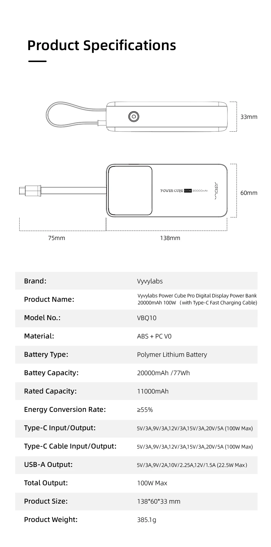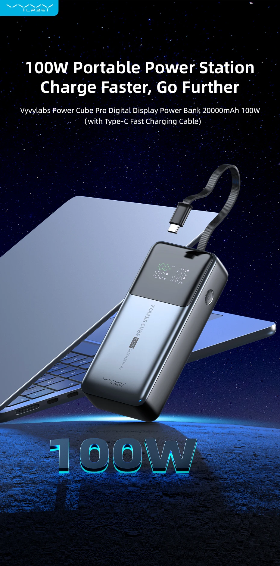Vyvylabs Power Cube Pro Digital Display Power Bank 20000mAh 100W