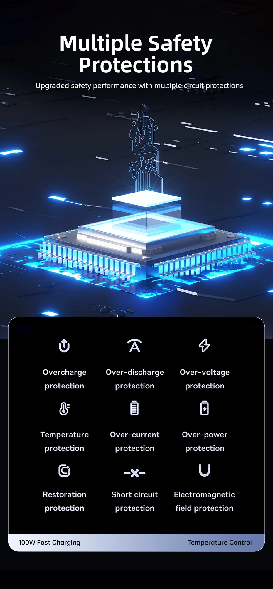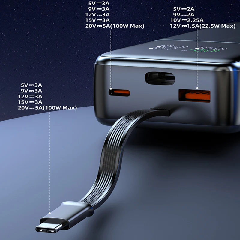 100W output power, not only fast charging for mobile phones, but also fast charging for laptops.