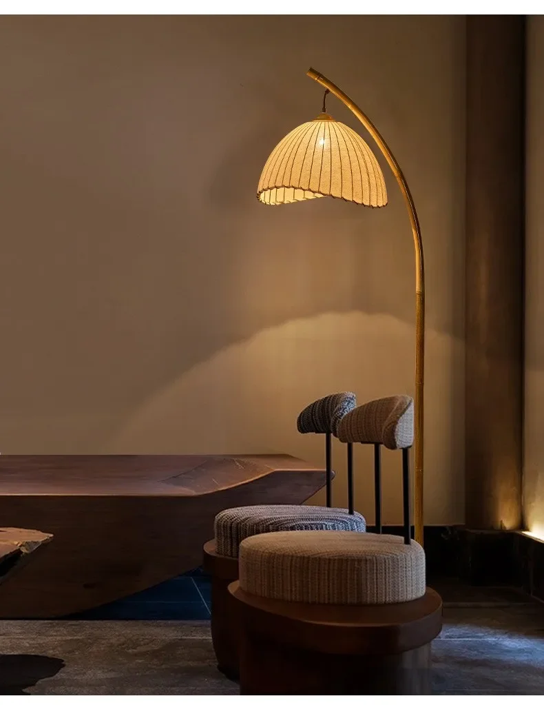 Wabi Sabi Canvas Shades Led Floor Lamp Nordic Bamboo Design Metal Floor Light Nordic Minimalism Living Room Lustre Lamp
