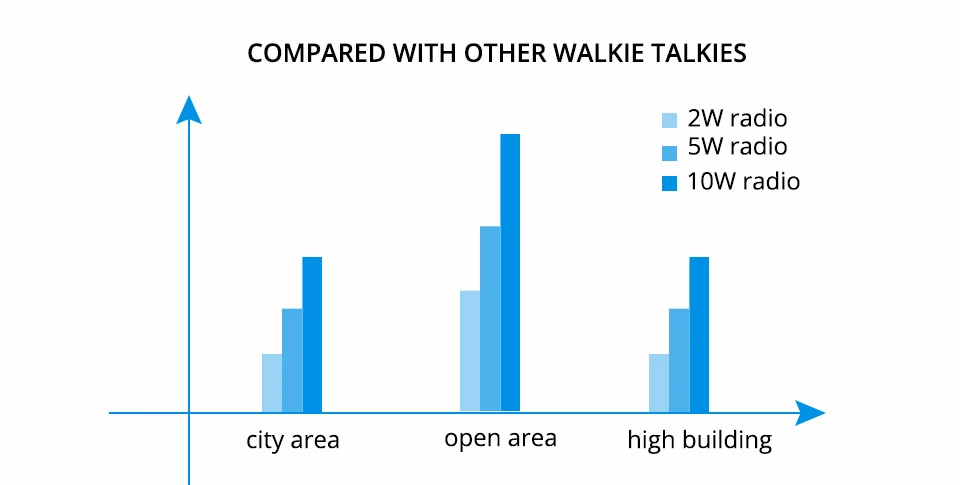 10W High power and strong penetrating power of walkie talkies greatly enhance its coverage so that you have accurate transmission without dead ends.