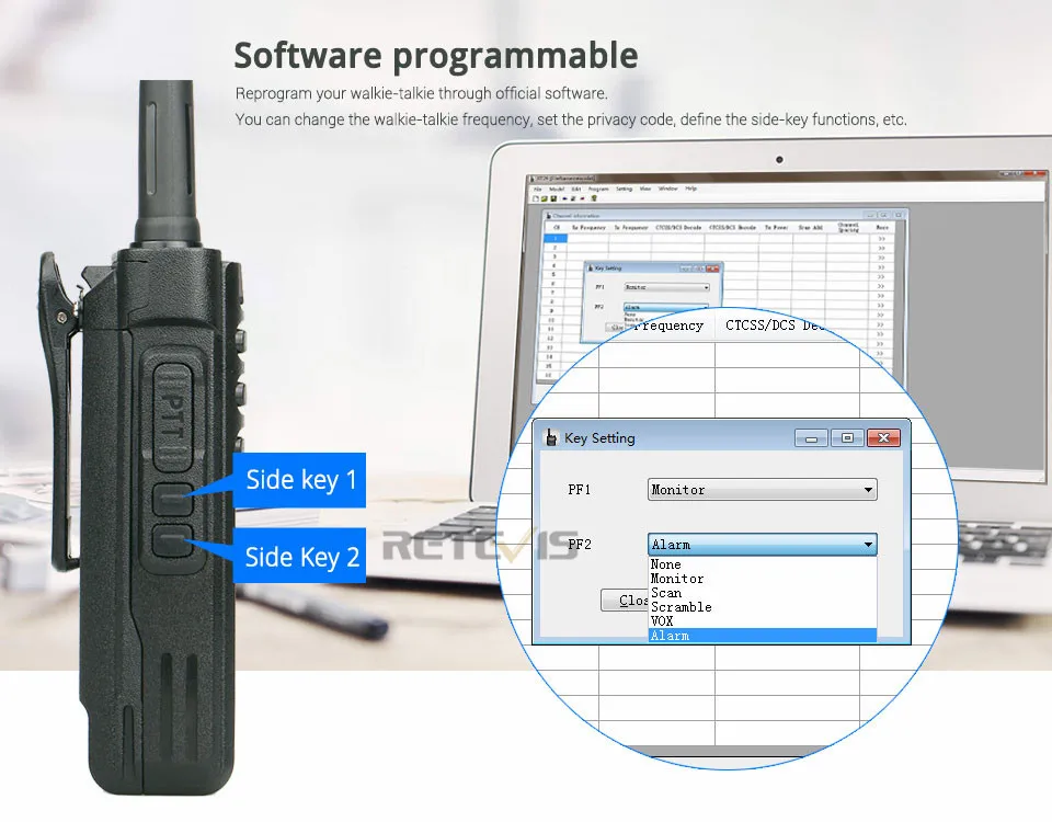 Side key customization:you can program the function you like to the side key to make it to be a shortcut keys.
