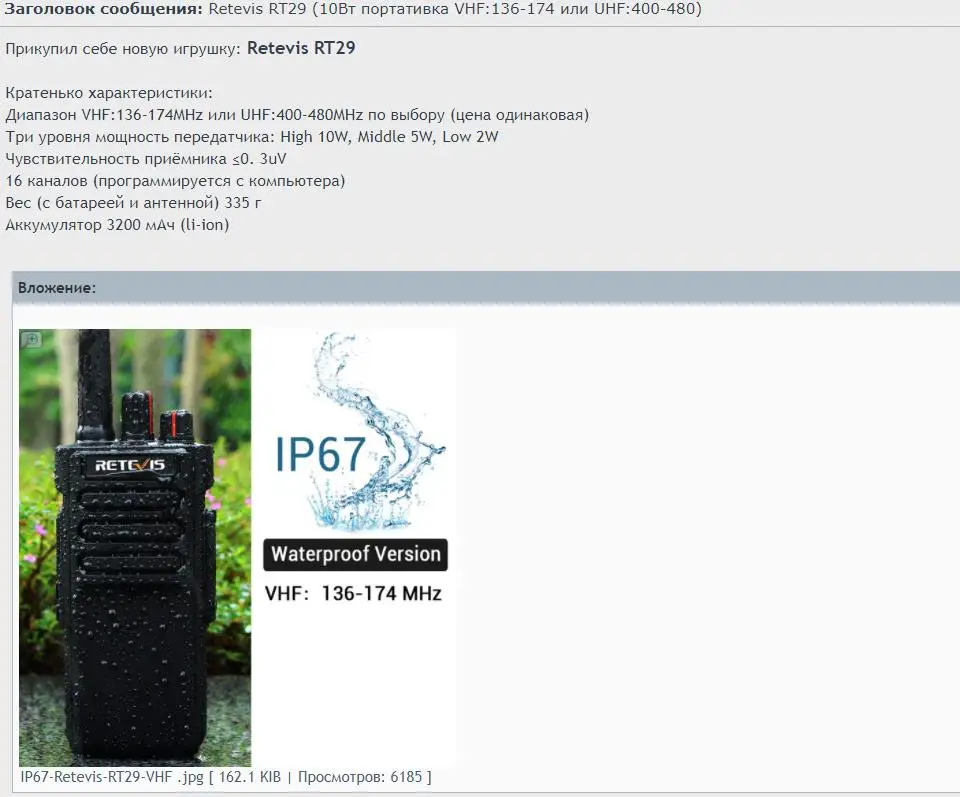 Note:the Retevis RT29 has two version,RT29 IP67 Waterproof version,RT29 without IP67 Waterproof version,when you make a order ,please note it.