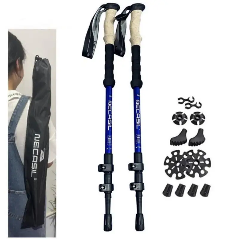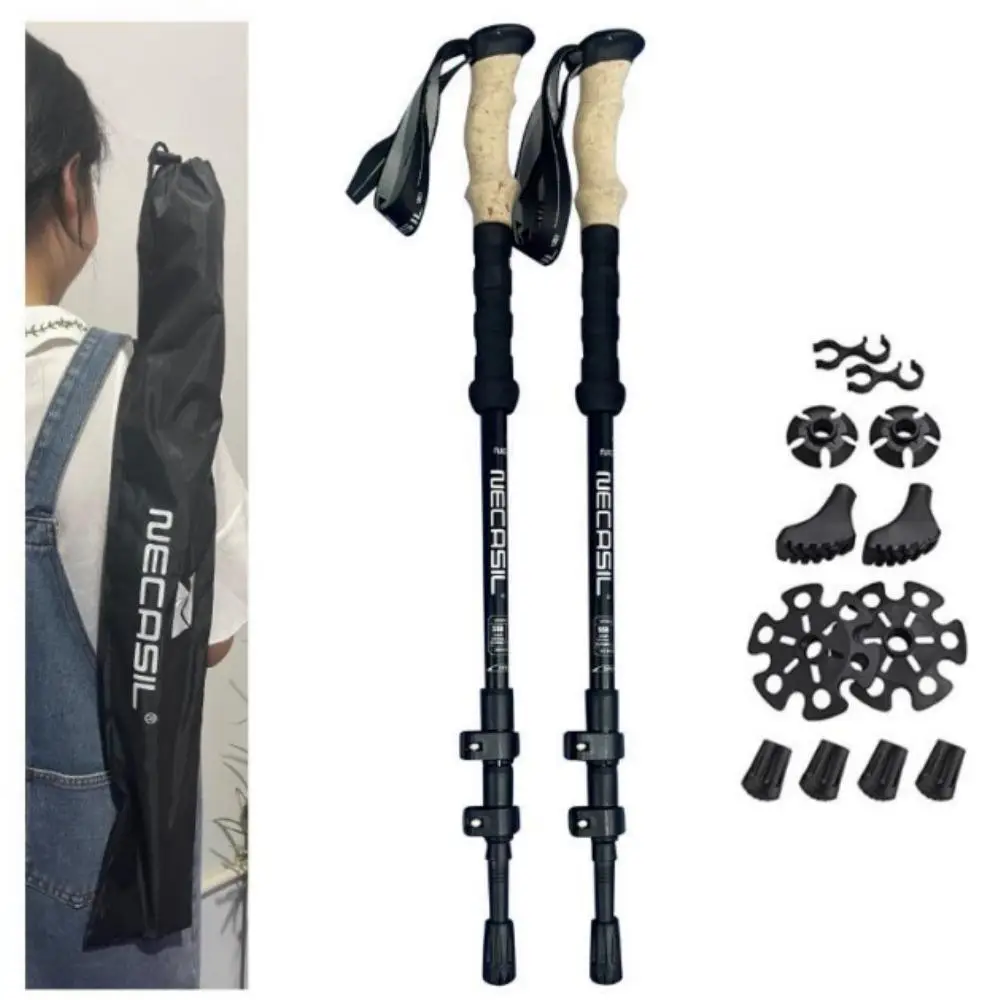 Walking Trekking Poles 2pcs Carbon Fiber Collapsible Telescopic Sticks Lightweight Walking Hiking Stick Climbing Stick