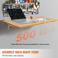 500 lbs High Load Capacity: Despite its compact size, this wall mounted desk holds up to 500 lbs thanks to its thick 1-inch material. It`s stable for everything from small tools, large tools, laptops, and heavy books to decor items, ensuring everything stays steady. The slow-closing brackets prevent pinching during use.