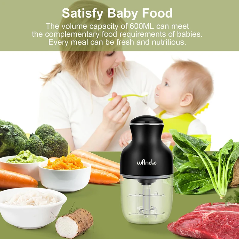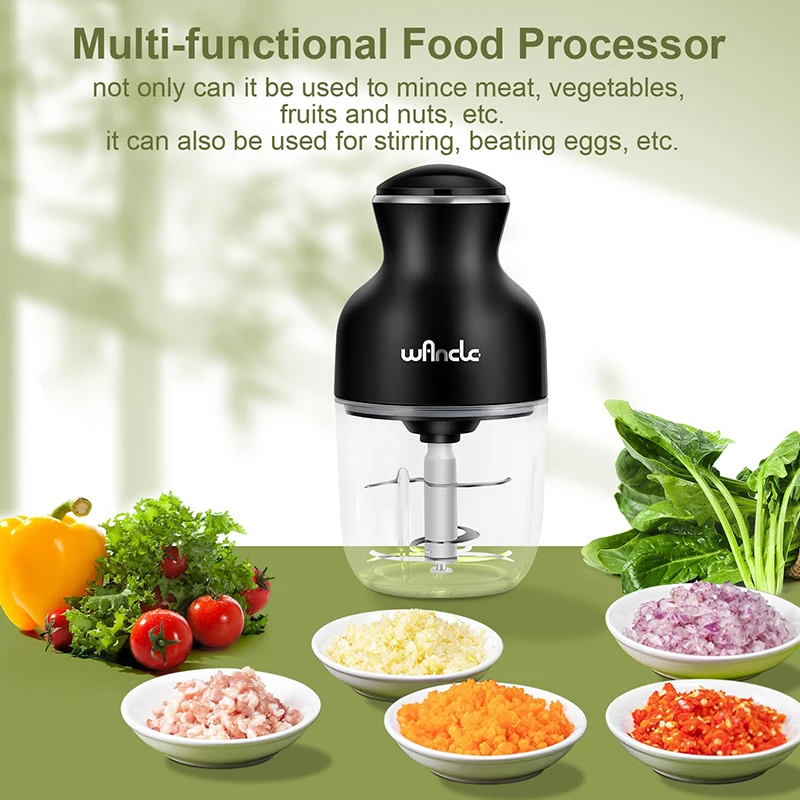 Equipped with a 350W motor and a sharp 6-blade blade,Wancle food chopper can quickly and evenly chop meat, vegetables and other ingredients.