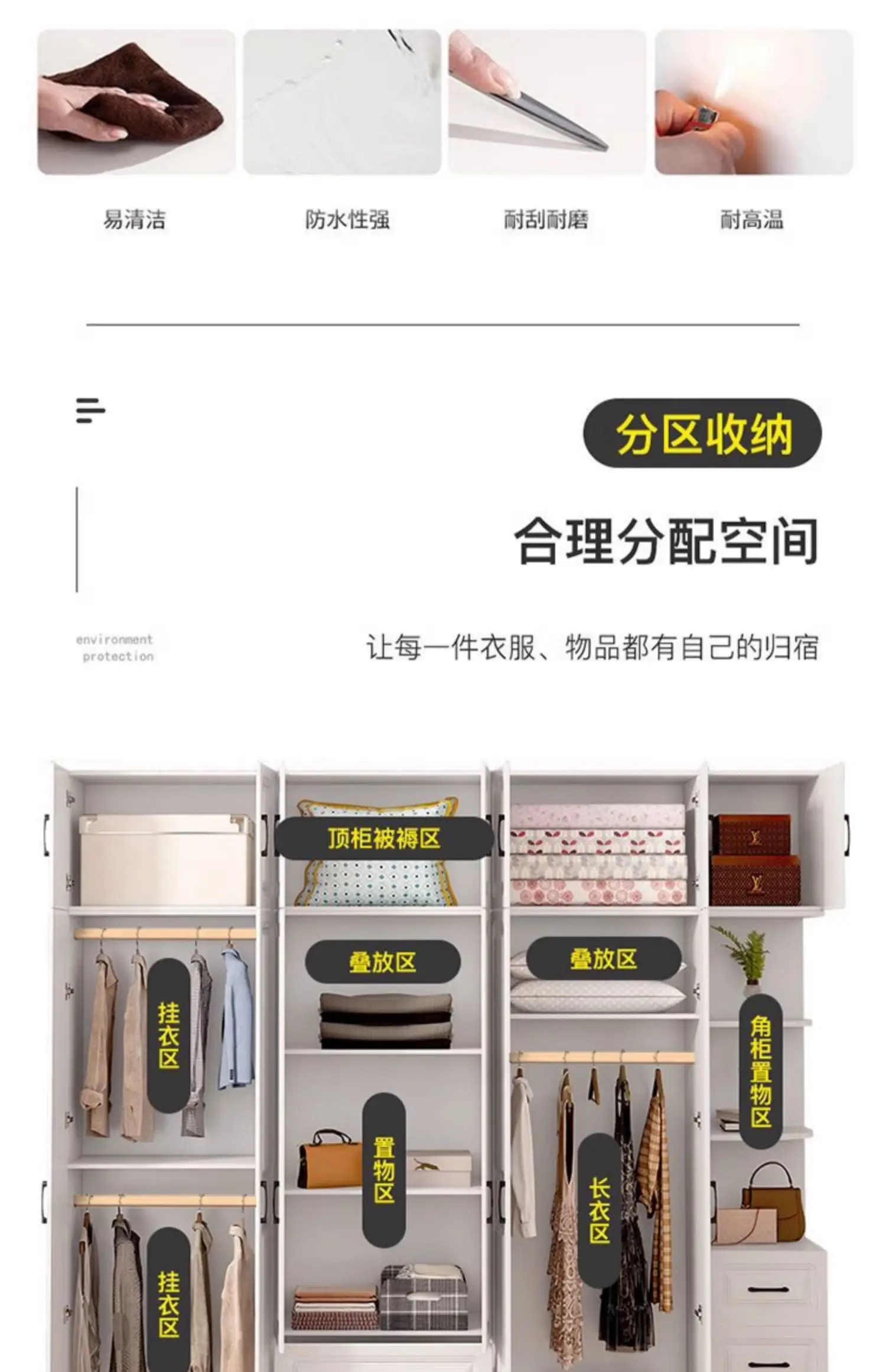 Wardrobe Home Bedroom European Simple Solid Wood Ecological Board Door Combination Rental Room Children’s Simple Wardrobe