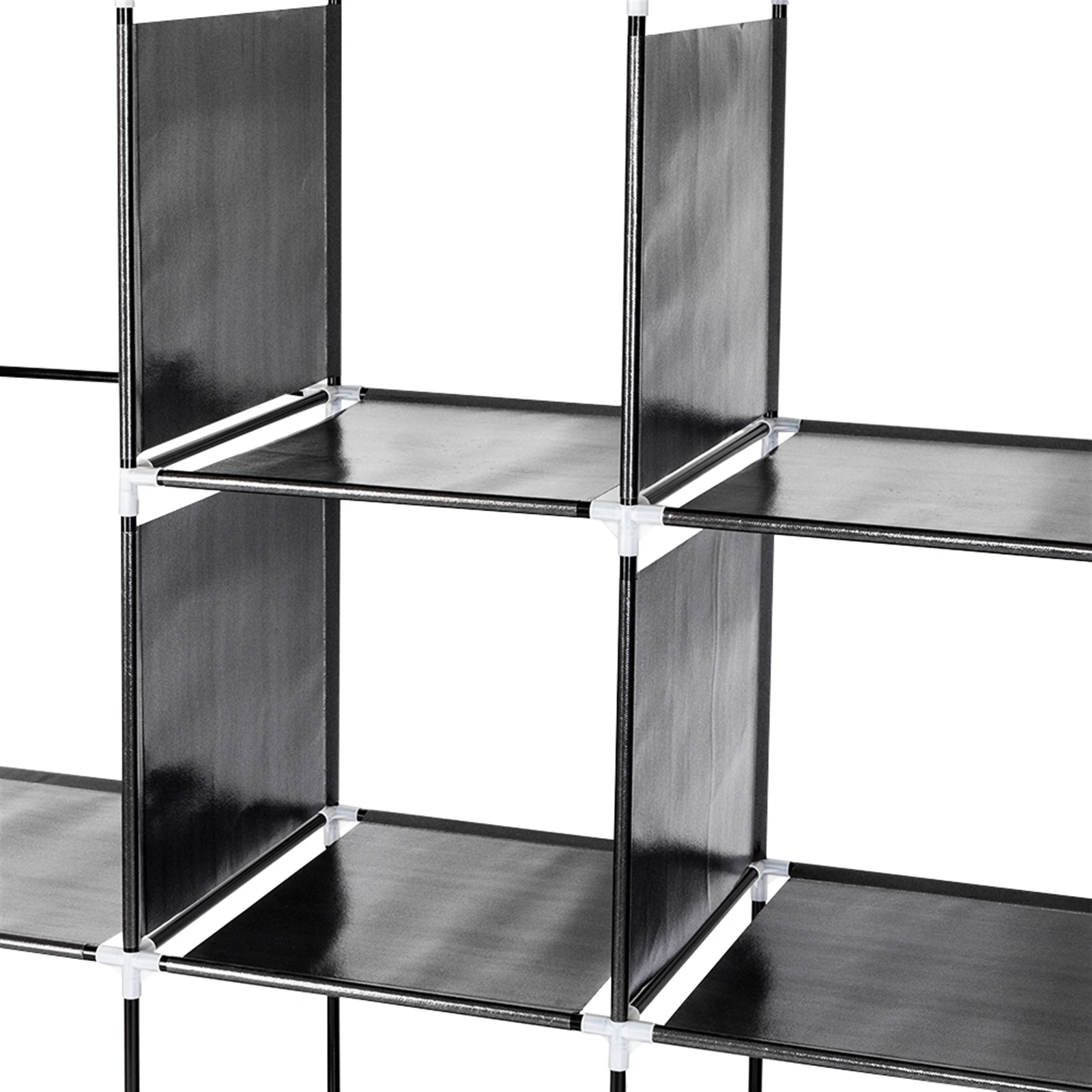 3. SPACIOUS STORAGE CLOSET: Movable Clothes Hanging Rod and 12 Storage Shelves Offers You Enough Space both for Your Longer Outfits and Folded Clothes.