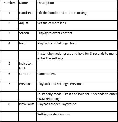 OGM recording mode. Lift the handle to start recording OGM video. If it ends, please hang up