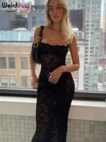 Be the first to review “Weird Puss Lace Black Women Maxi Dress See Through Sleeveless Ladies Sexy Coquette Nightclub Party Bodycon Slim Fit Vestidos”