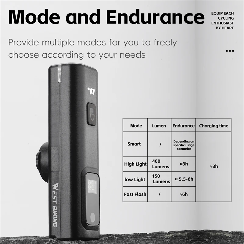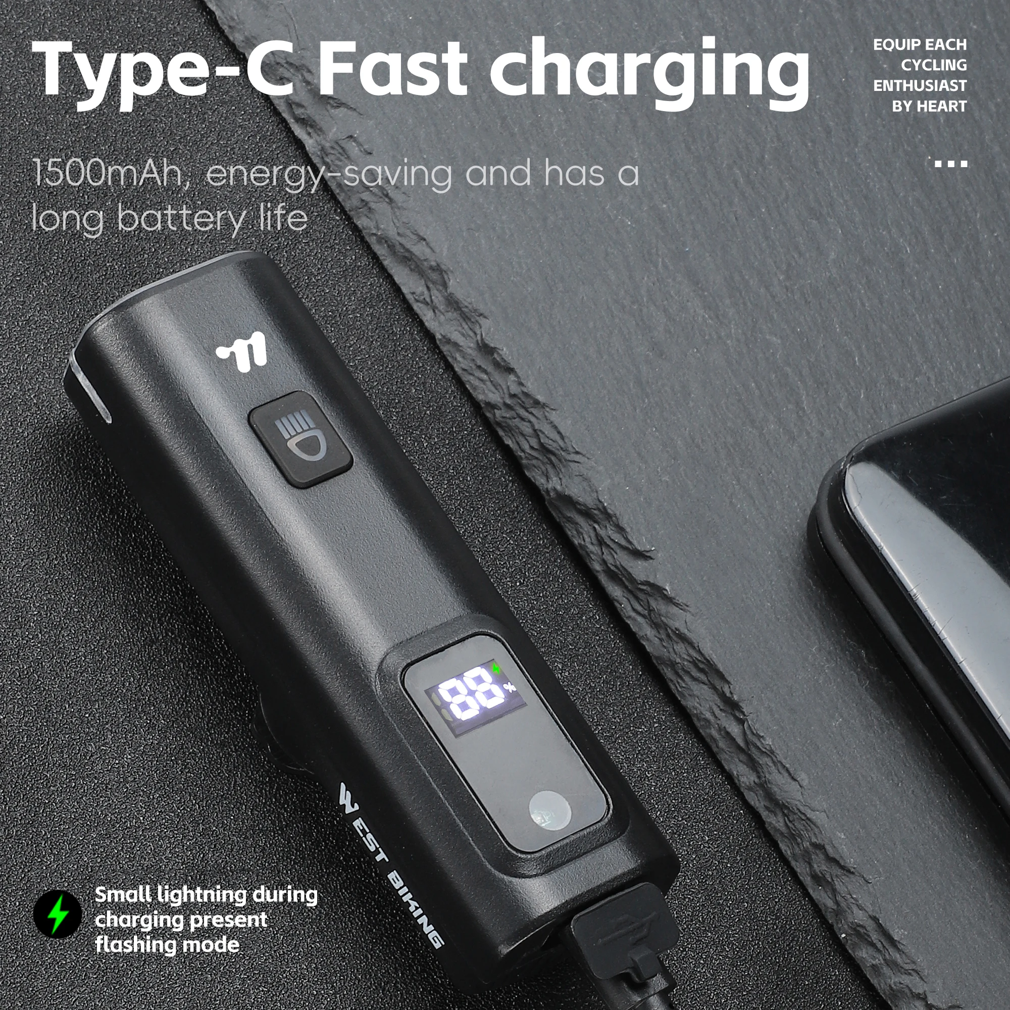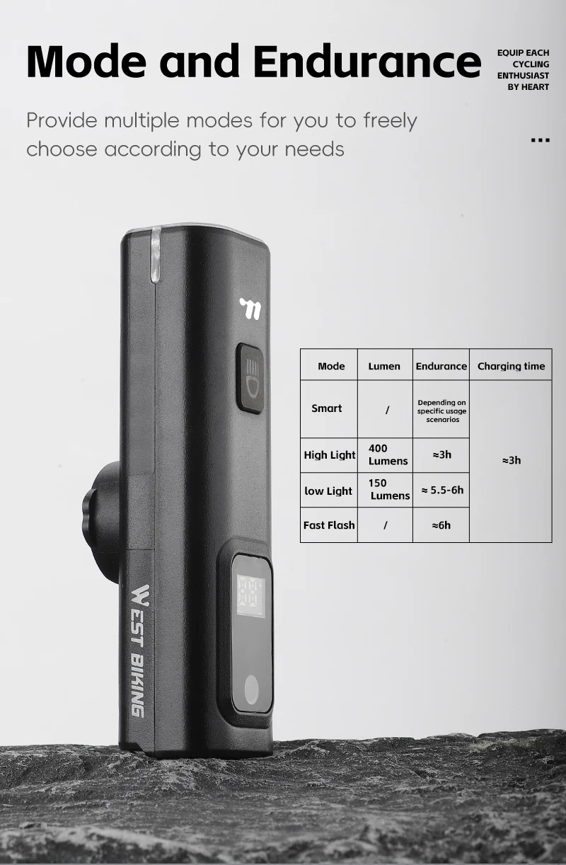 WEST BIKING 400LM Bike Light Type-C Charging LED Cycling Front Lamp Headlight Waterproof MTB Road Flashlight Bicycle Light