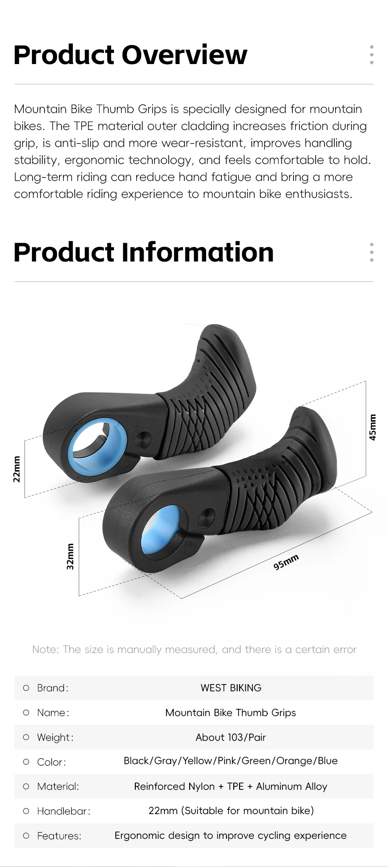 WEST BIKING Bike Inner Handle Bar Grips Ergonomic Design Cycling Inner Bar Ultralight Mountain Bicycle Vice Handle Rest Handle