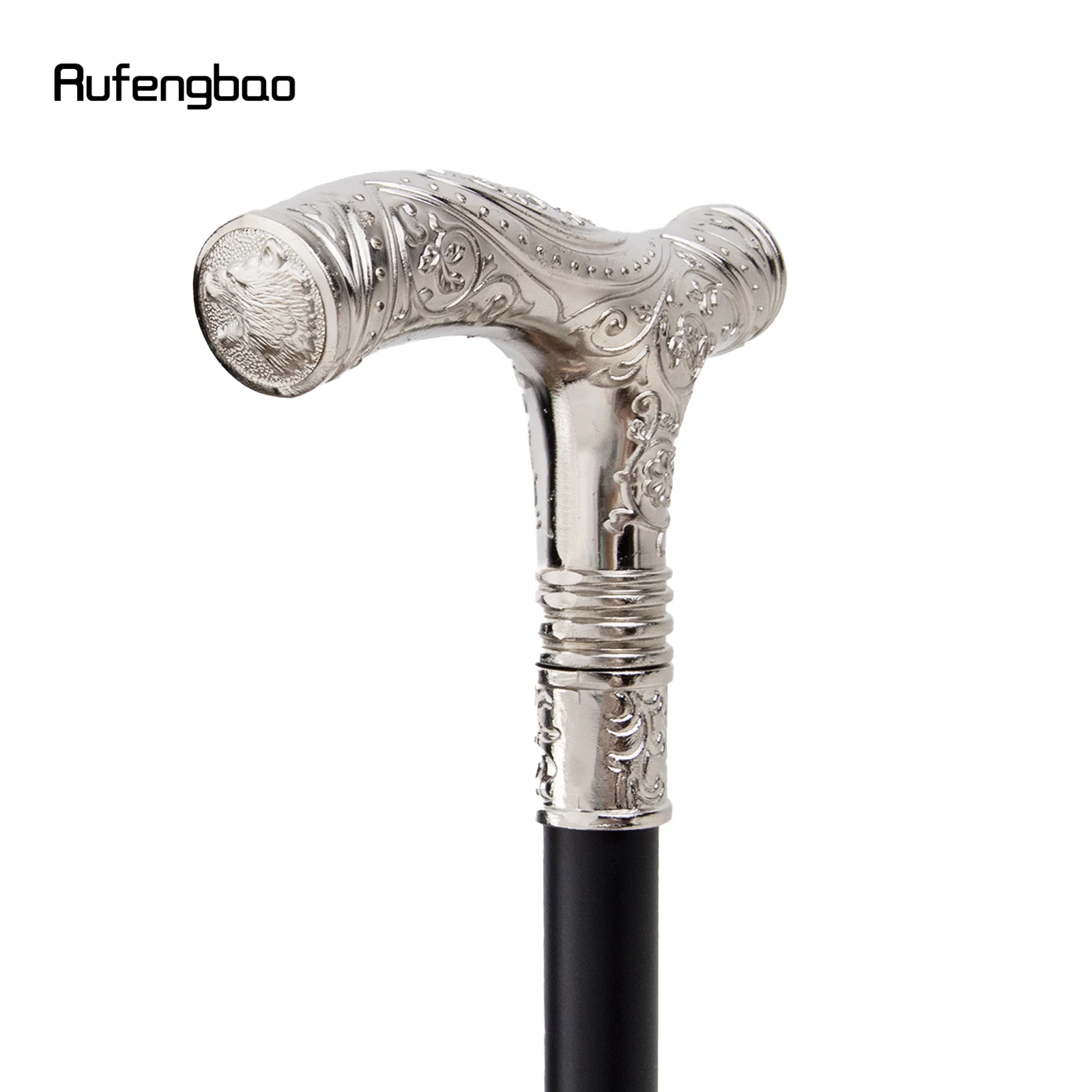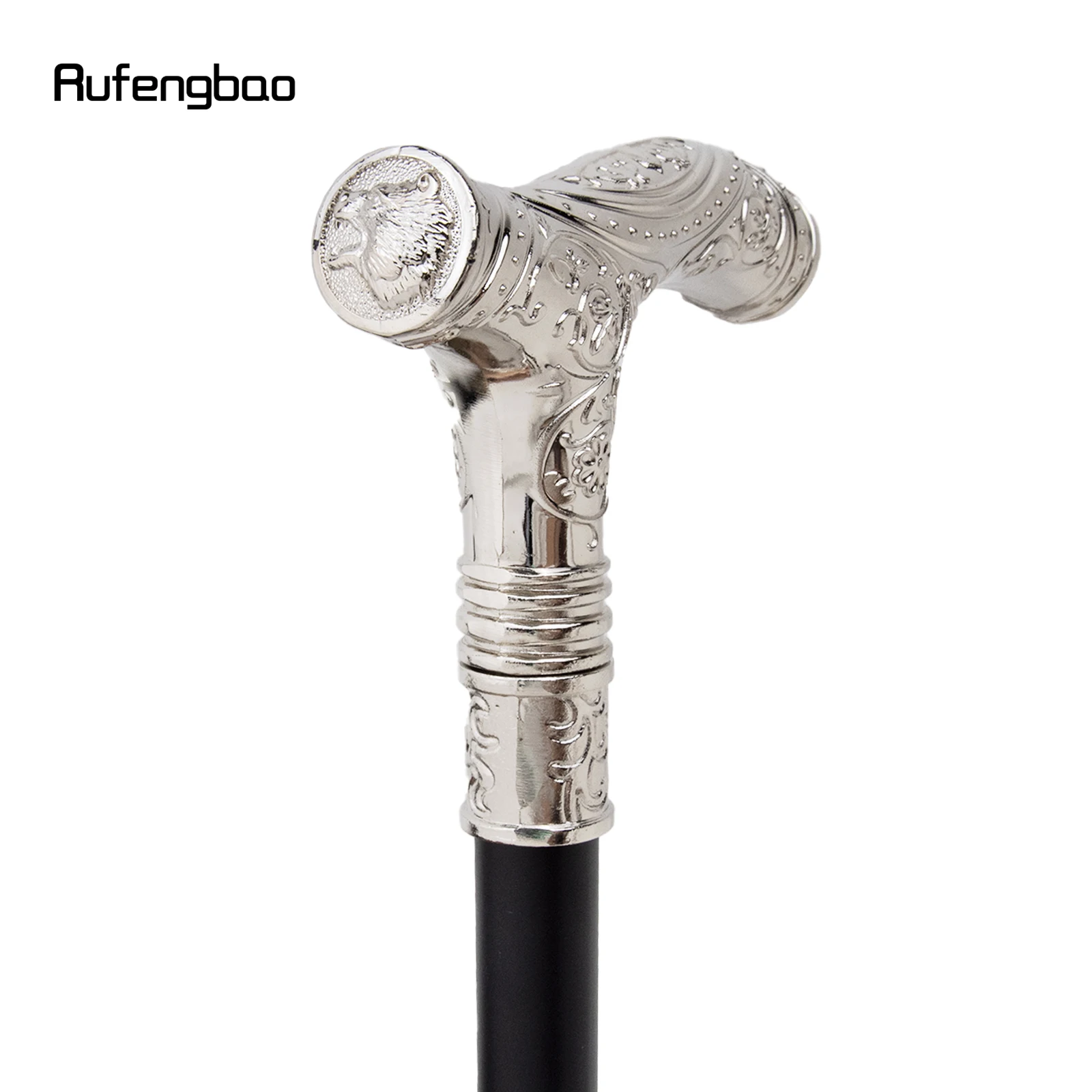 White Roaring Bear Head Flower Totem Relief Walking Cane Fashion Walking Stick Gentleman Crosier Knob Walking Stick 93cm