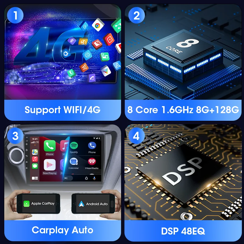 - Special Features: Built-in Gps,Charger,Mobile Phone,MP3 players,Voice Control,dsp,CarPlay,android auto,Reversing Input,Split Screen
