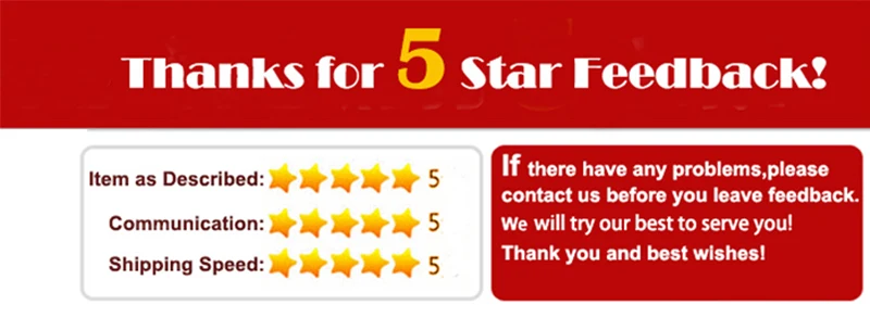 2.If you have any problems with our items,please feel free to contact us first before you leave negative feedback.