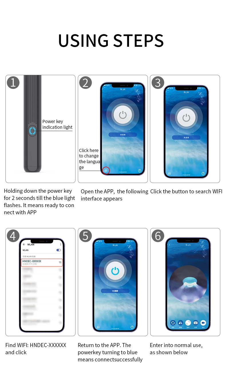 【Easy to Use & Wide Compatibility 】 Scan QR code on manual ,Download and install the APP on your device, Press and hold the power button on top of device to turn on the ear cleaning rod and then connect WiFi(Name :HNDEC-xxxx) with your device .The APP works with all of Android smartphone / tablet and IOS iPhone / iPad.