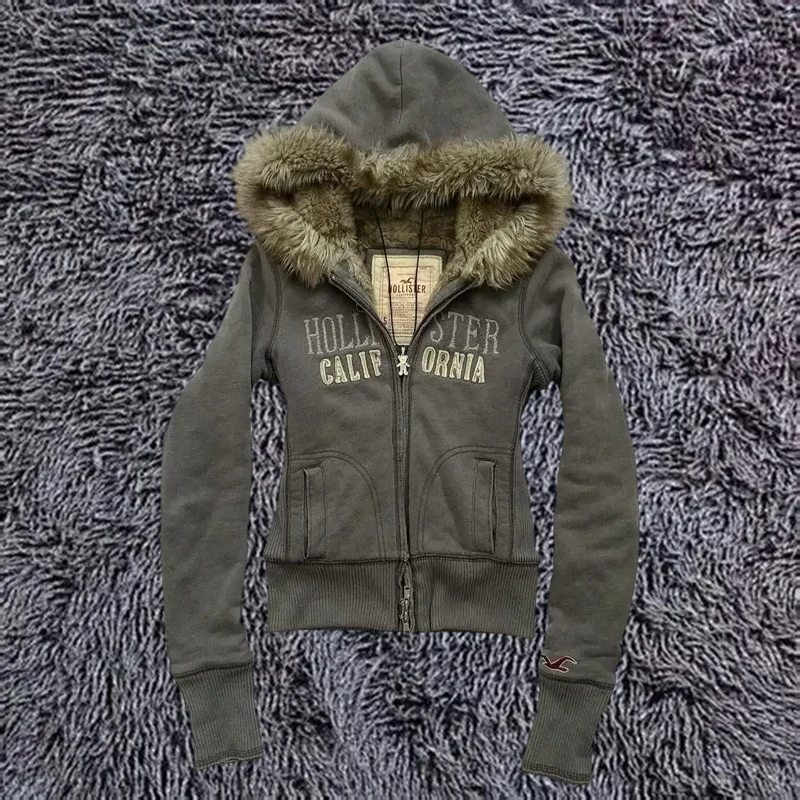 Women Hooded Sweatshirt Fleece Lined Hood Zipper Soft Fabric Double Zipper Design Slim Fit Casual Outfit Trendy Must Have Gray