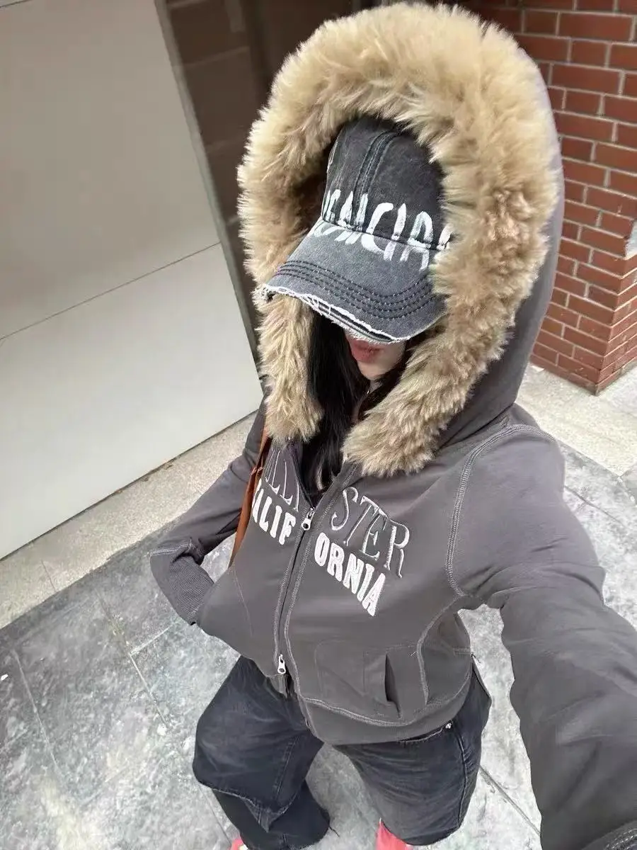 Women Hooded Sweatshirt Fleece Lined Hood Zipper Soft Fabric Double Zipper Design Slim Fit Casual Outfit Trendy Must Have Gray