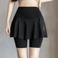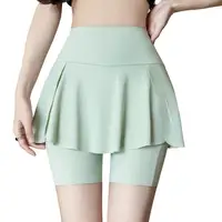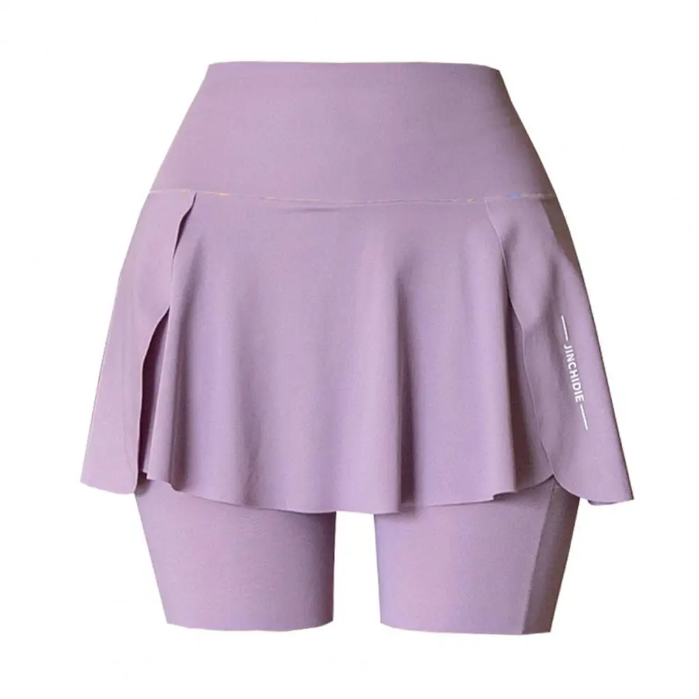 Women Yoga Skorts Elastic High Waist Pockets Design Mini Sport Shorts Solid Color Fake Two Pieces Running Cycling Skorts