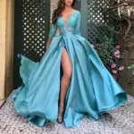 Be the first to review “Women’s Dress Spring Sexy Slim Lace Stitching Split Dress Women’s Fashion Long Sleeve V-neck High Waist Party Formal Dress”