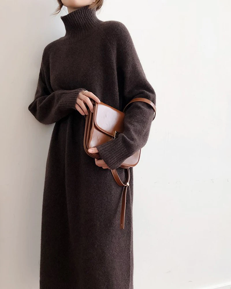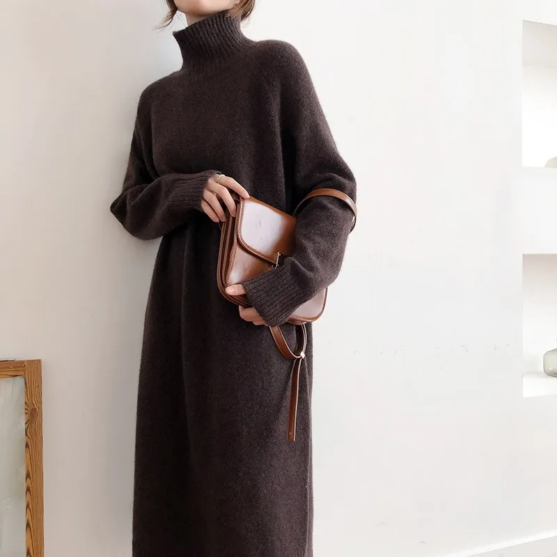 Be the first to review “Women’s Mid-length Pure Cashmere Sweater Dress, Loose Knitted Bottoming Sweater, High Collar, Over the Knee, Plus Size”