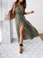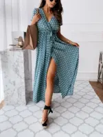 Be the first to review “Women’s Summer Short Sleeved V-neck and Ankle Skirt Bohemian Polka Dot Printed Dress Long Skirt”
