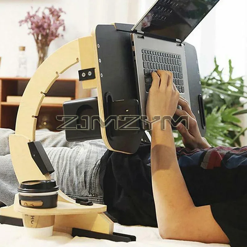 Wooden Adjustable Notebook Stand, Desk Computer Stand, Portable Foldable Stand, Multifunctional Lazy Person Lying Bed Desk