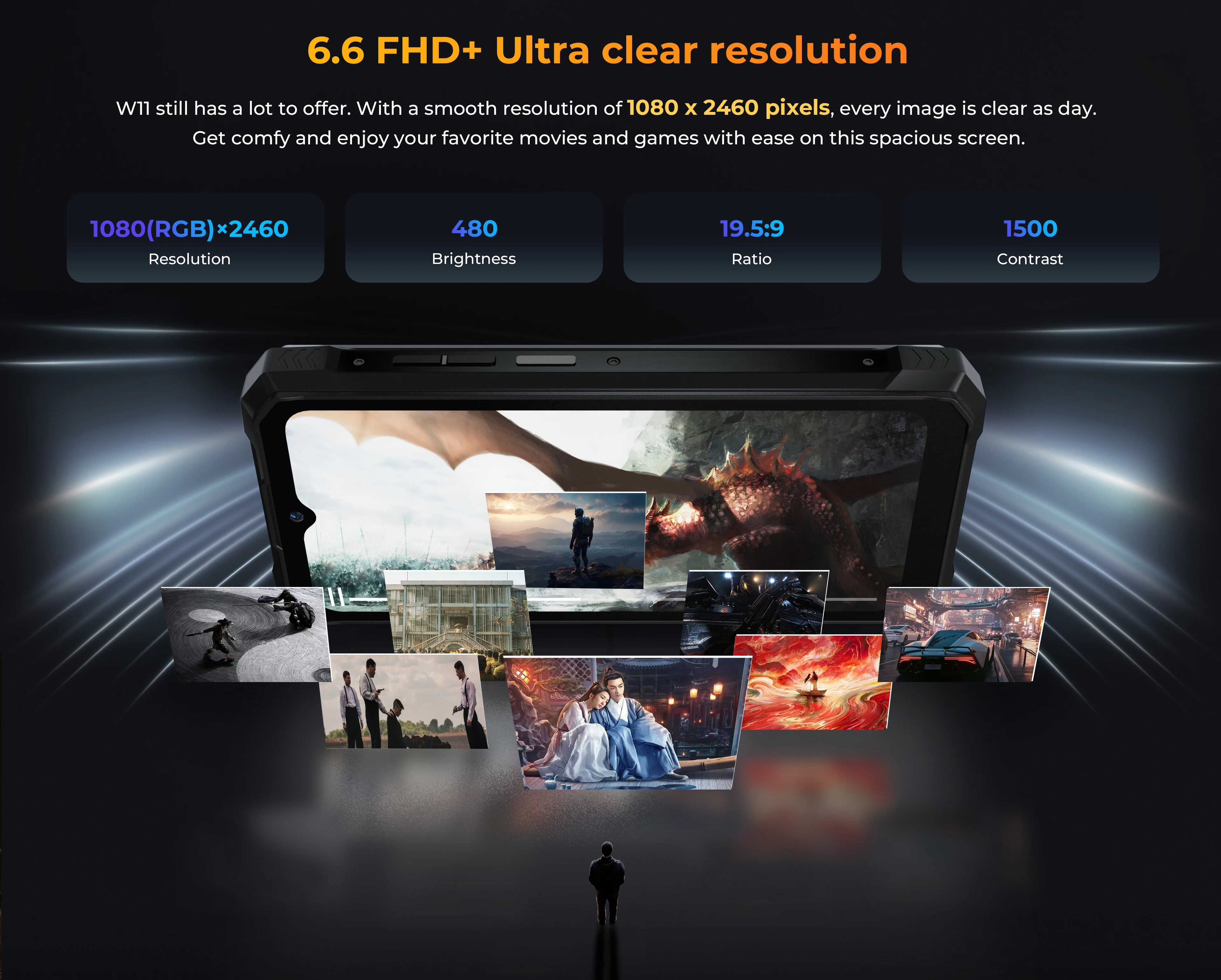 It’s 2024! Using smartphones without charging just feels like driving a car with a weak engine. W11 offers 33 Watt fast charge so that you don’t need to wait all day for the massive 20800mAh battery to be fueled up.