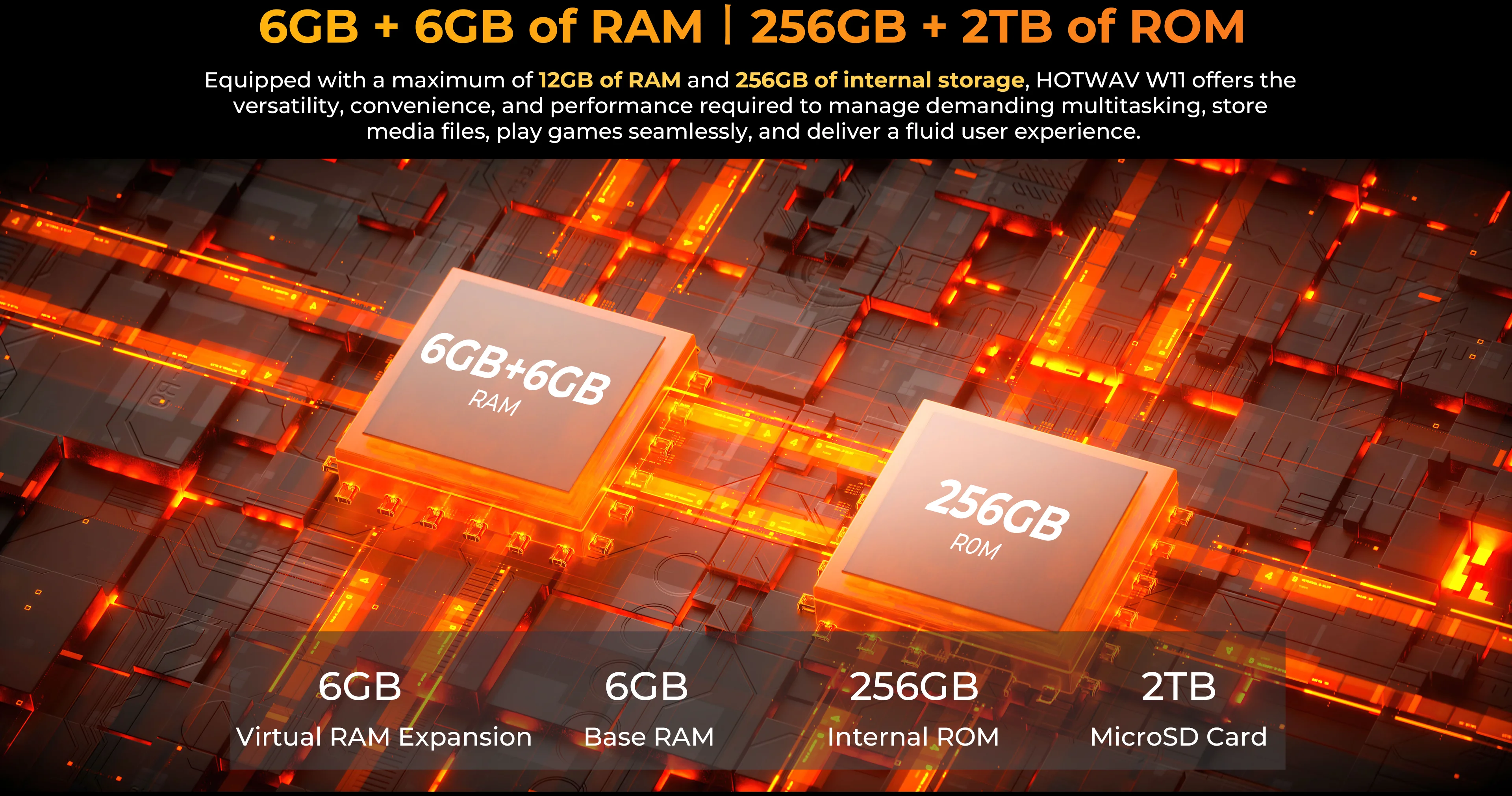 Equipped with a maximum of 12GB of RAM and 256GB of internal storage, HOTWAV W11 offers the versatility, convenience and performance required to manage demanding multitasking, store media files, play games seamlessly, and deliver a fluid user experience.