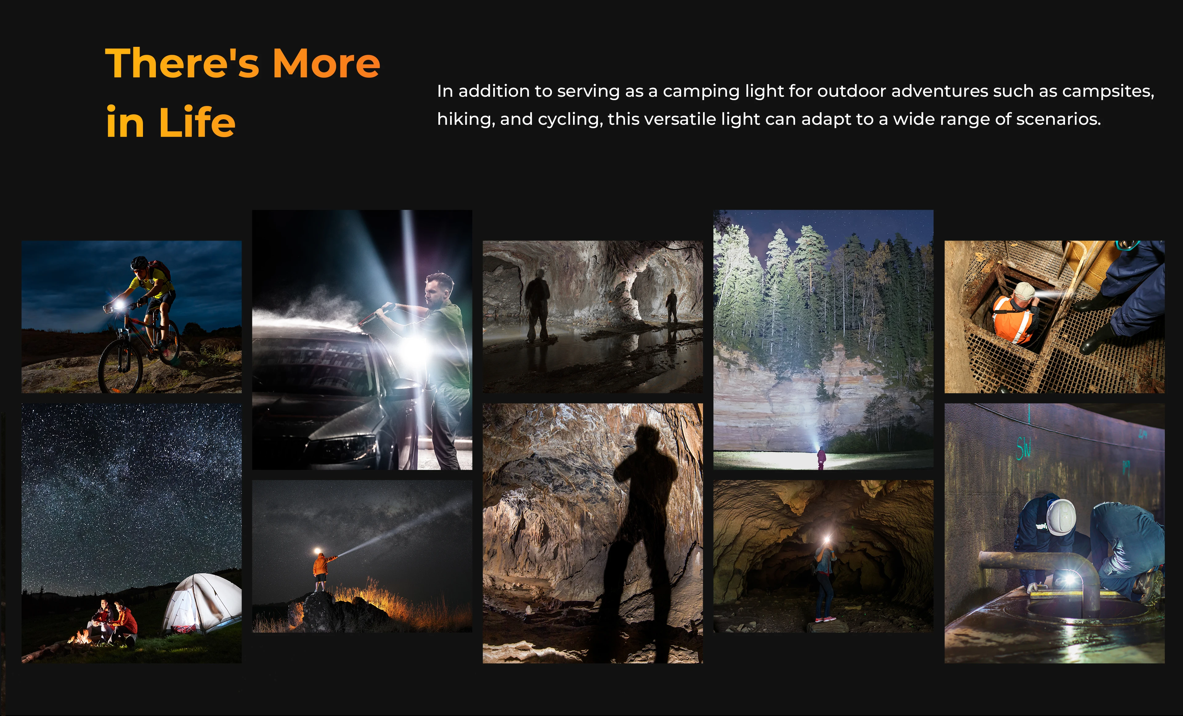 In addition to serving as a camping light for outdoor adventures such as campsites hiking, and cycling, this versatile light can adapt to a wide range of scenarios.