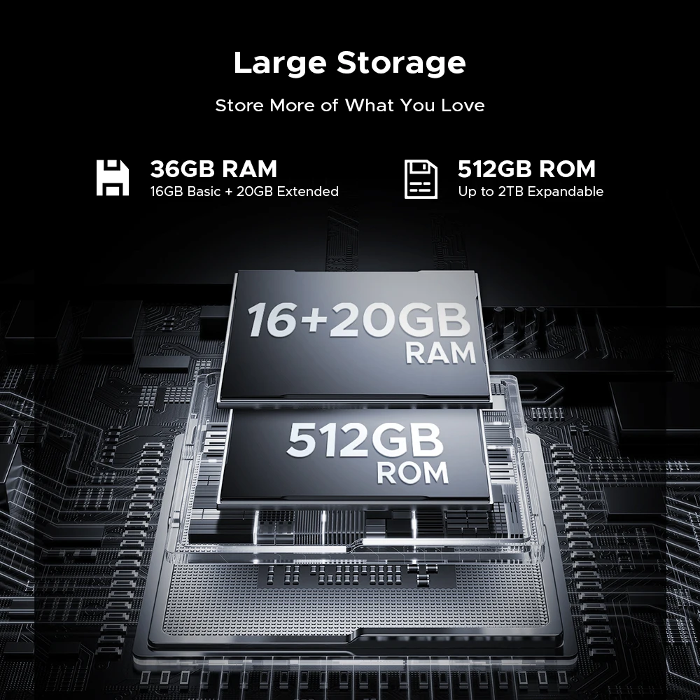 36GB RAM(16GB+Up to 20GB Extended RAM)+512GB ROM |