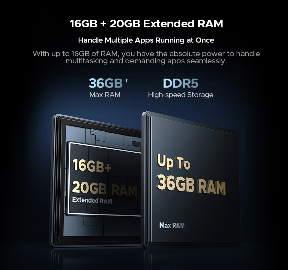 36GB RAM(16GB+Up to 20GB Extended RAM)+512GB ROM |