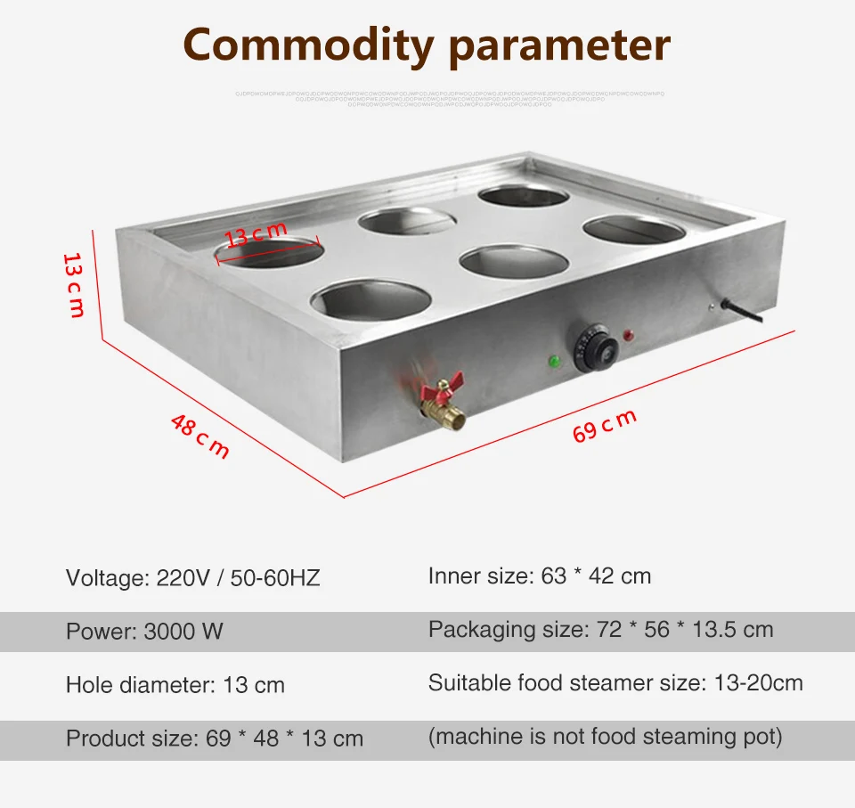 - Suitable food steamer size: 13-20cm (the machine not include the food steamer)