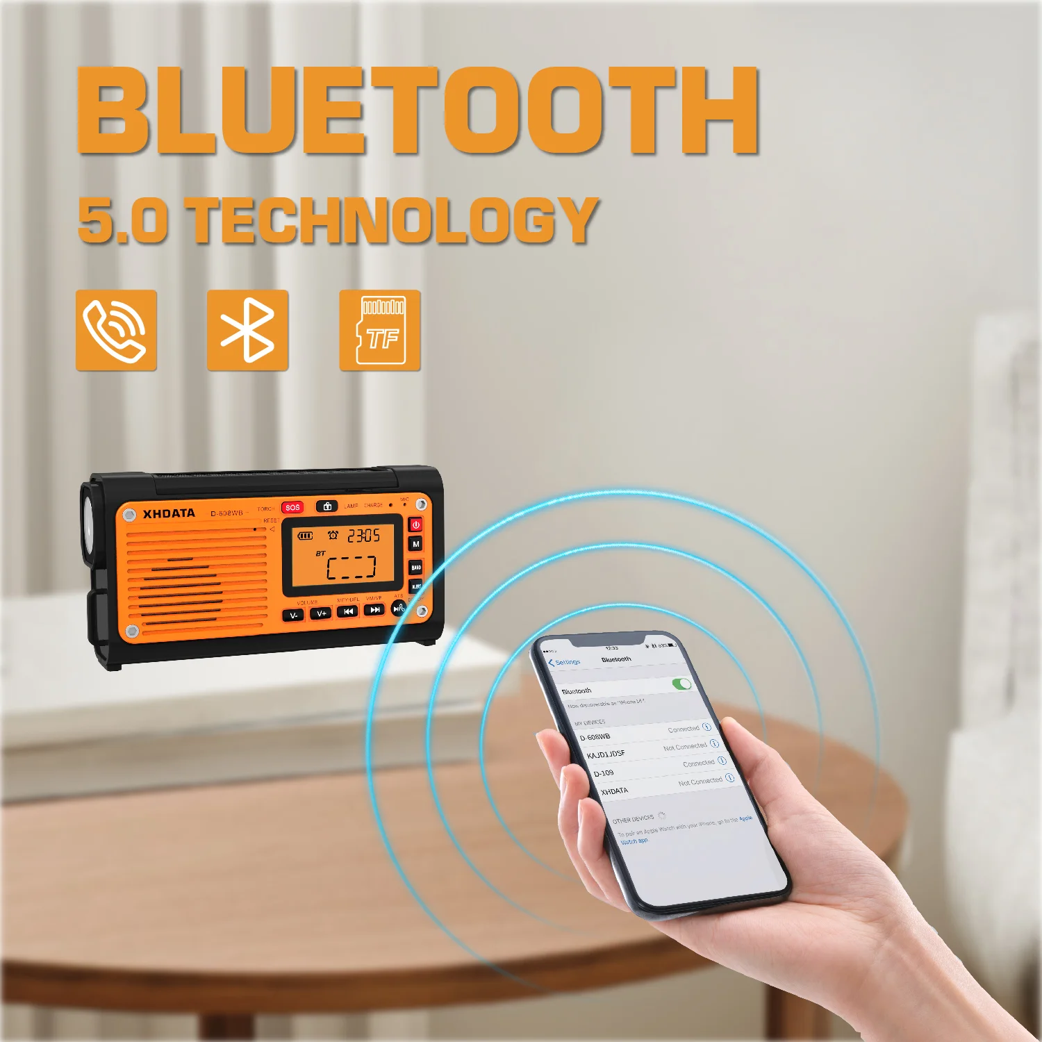 [BLUETOOTH AND TF CARD MP3 PLAYER]–D608WB portable emergency weather radio is equipped with Bluetooth and TF card MP3 function. You can connect your cell phone to the D608WB via Bluetooth and use the D608WB as a speaker to listen to your favorite music. Enjoy your reading time with music by using it together with a reading light. If you receive a call while using Bluetooth, you can also make a wireless call through the D608WB.