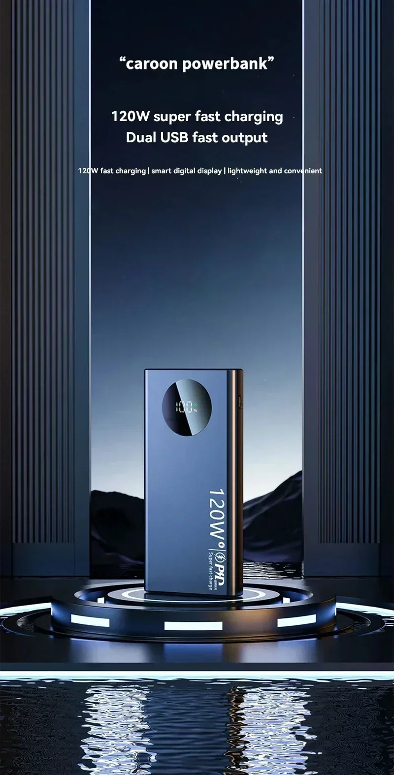 Product: 120W super fast charging power bank with built-in power cord