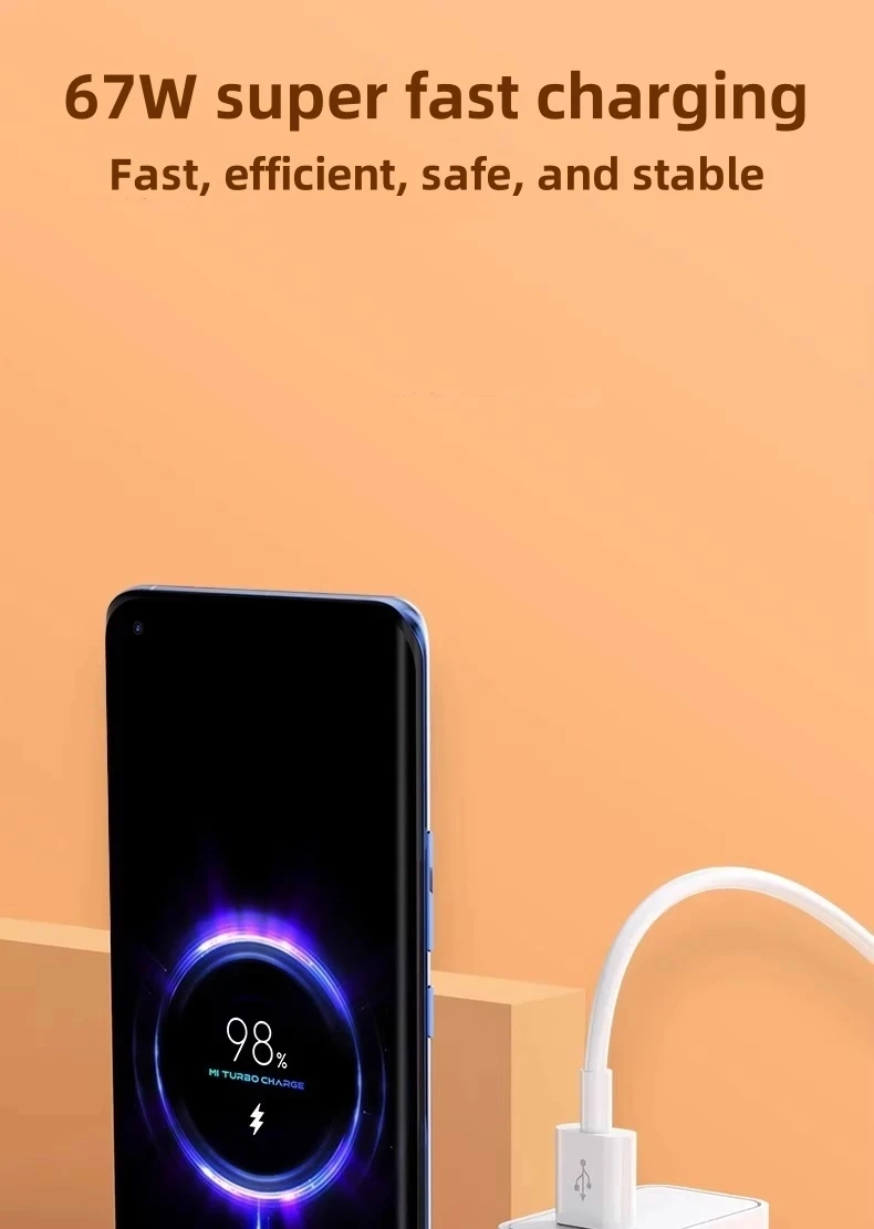 Xiaomi 67W USB Fast Charger for Xiaomi 14 13 12 11 10 Ultra Redmi Note 12T 13 Pro Turbo Quick Charge Type C USB Charging Cable